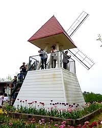 ほぼ中央には、風車の形の展望台があり、上から畑を見渡すとこれまた圧巻。